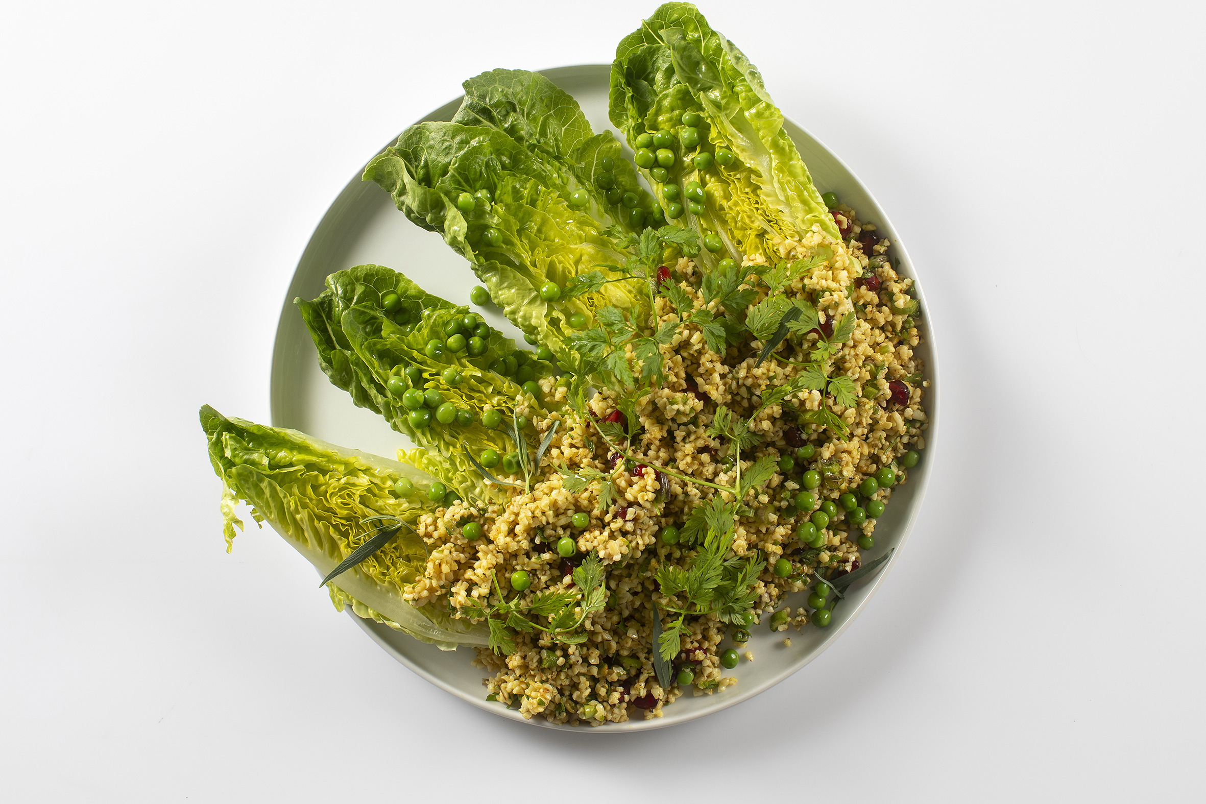- Stegt hjertesalat med bulgur og ristede kerner.
