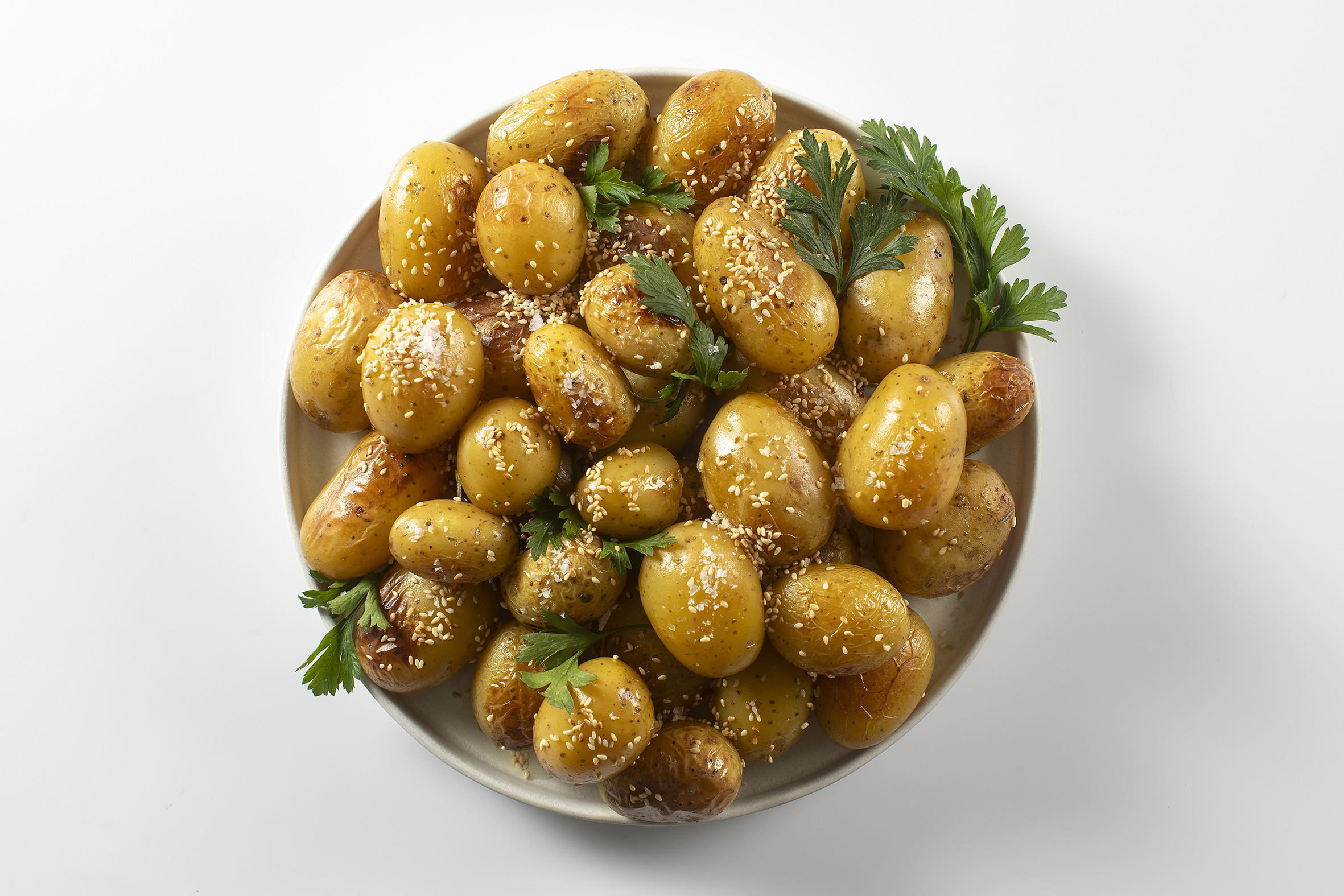 - Sesamkartofler med brunet smør.