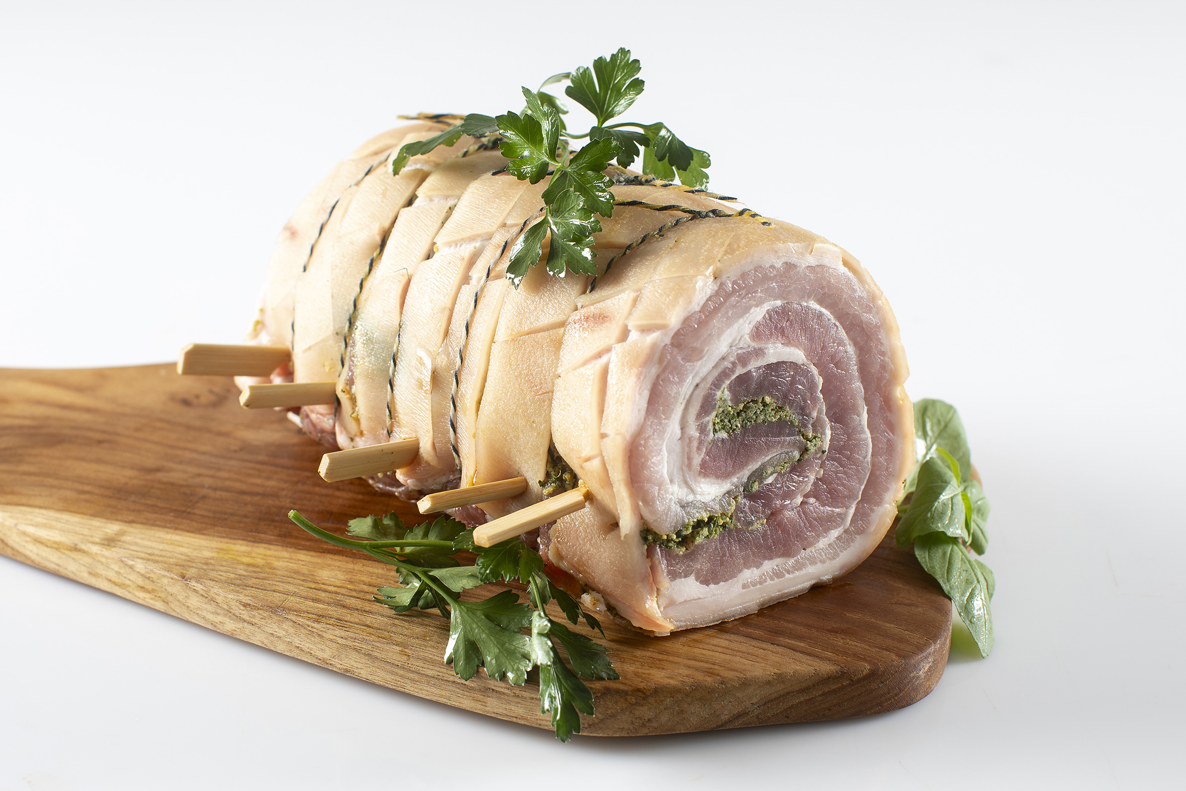 NB: Billedet viser et eksempel på en stegt porchetta.