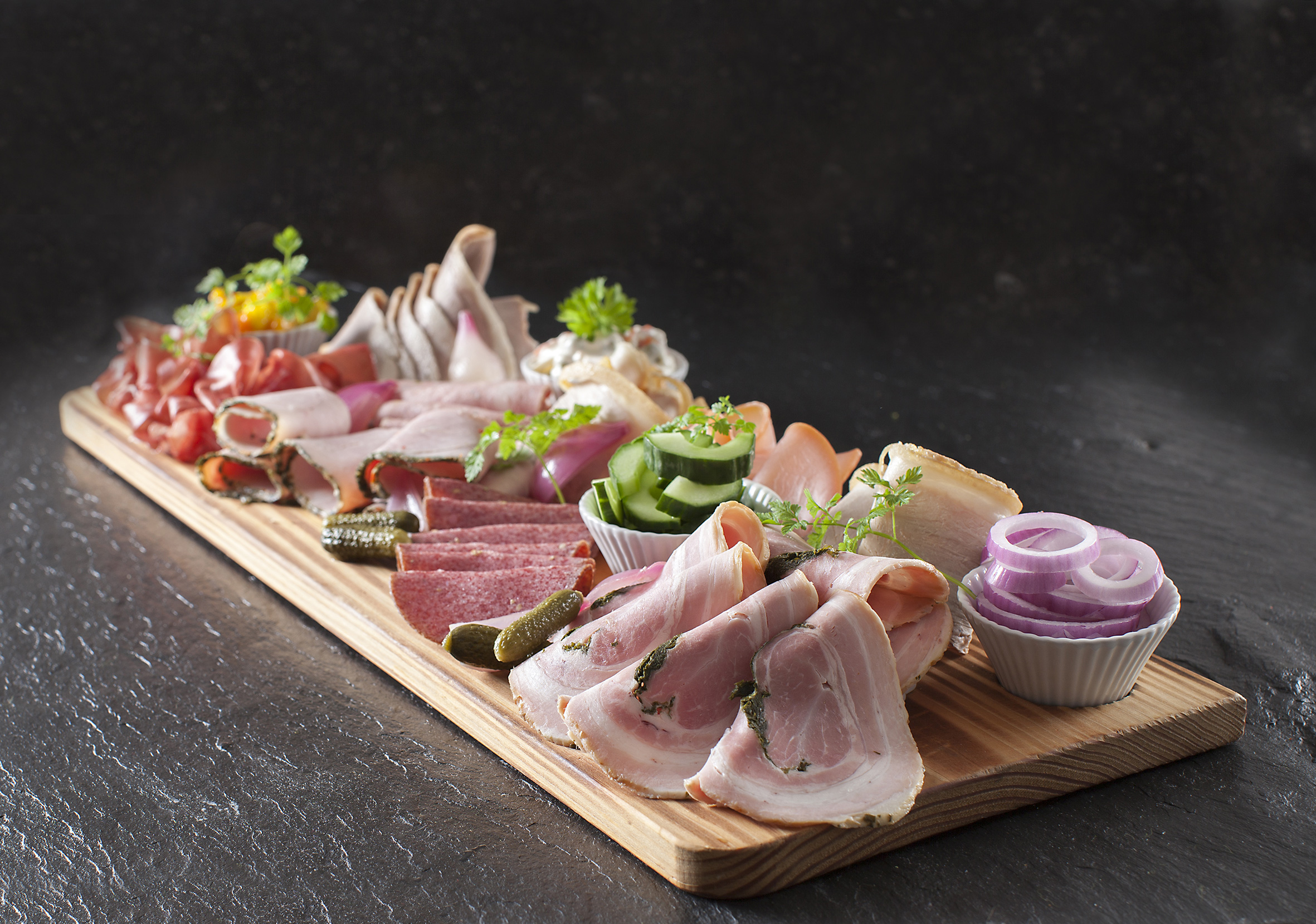 Der leveres på fade og i skåle – klar til buffeten.